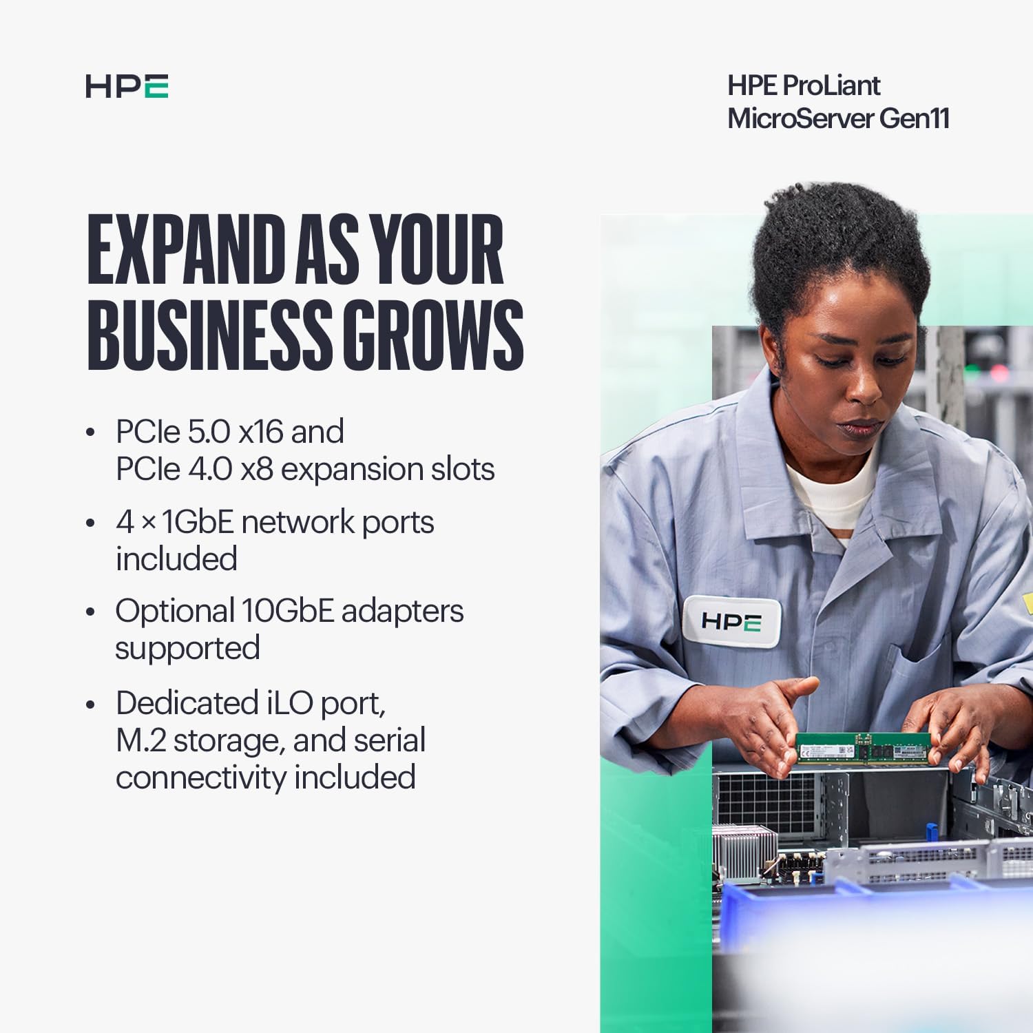 MODEL P74440-005: Ultra-compact HPE ProLiant MicroServer Gen11 featuring Intel Xeon E-2434 3.4GHz 4-core processor, ideal for SMB workloads and edge deployments